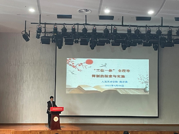 4月28日下午,学校在行政楼木兰报告厅举行2020级全程导师制推进会。我院汉语言文学系主任陈正勇作为导师制代表在会上作 “‘三位一体’全程导师制的探索与实施”经验交流。