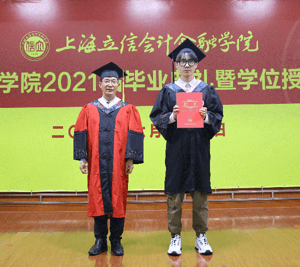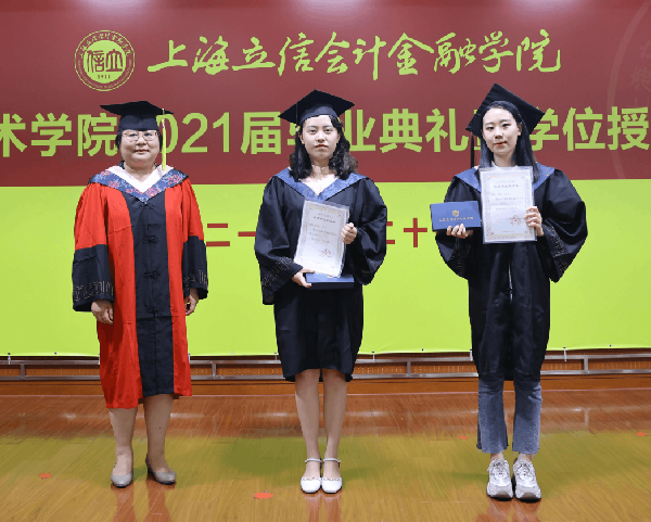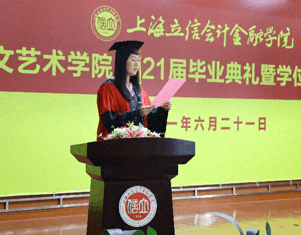 学院副院长何爽宣读《上海立信会计金融学院2021届本科学生准予毕业、学位授予决定》。