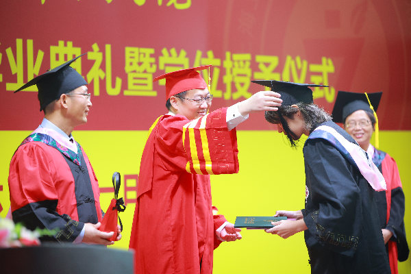 典礼上,王军华、姚惠兰、黄敏为每一位毕业生进行了学位授予的拨穗礼仪式并赠送了毕业礼物。全体毕业生进行了庄重的诚信宣誓。毕业典礼在全体教师和毕业生高唱校歌中结束。
