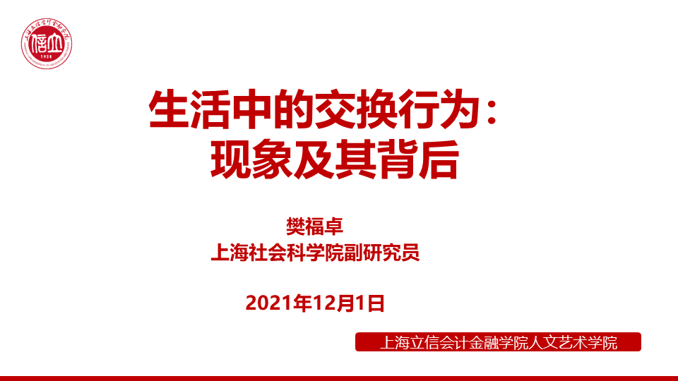 为了拓展我院学生知识视野、增强经济直觉,12月1日,学院邀请上海社会科学院樊福卓副研究员在云端为我院汉语言文学本科学生和少数民族预科学生开展“生活中的交换行为:现象及其背后”讲座。讲座由学院党总支书记黄敏主持。