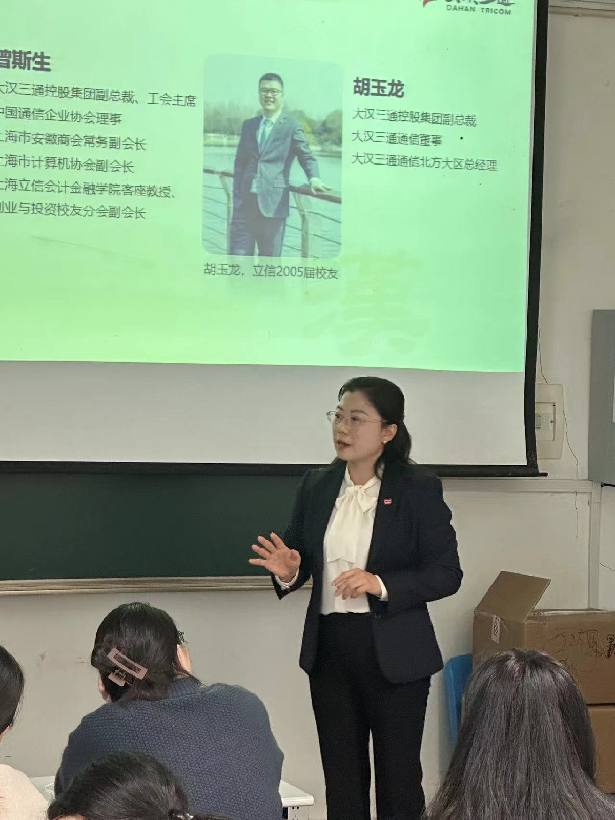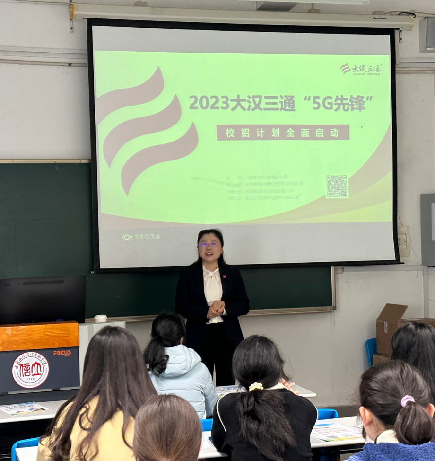 宣讲会上,高金容介绍了大汉三通集团——作为和我校深度联系的校友企业,以及集高新技术研发、互联网运营、科技投资于一体的科技集团,下设数字通信、智能供应链、金融服务三大板块,三架马车齐头并进。除此以外,高金容还介绍了公司文化及员工活动、人才培养和发展规划。互动交流环节,针对此次招聘岗位,有学生提出了自己的问题,还有学生现场向心仪的岗位投递了简历,现场氛围热烈,学生收获满满。