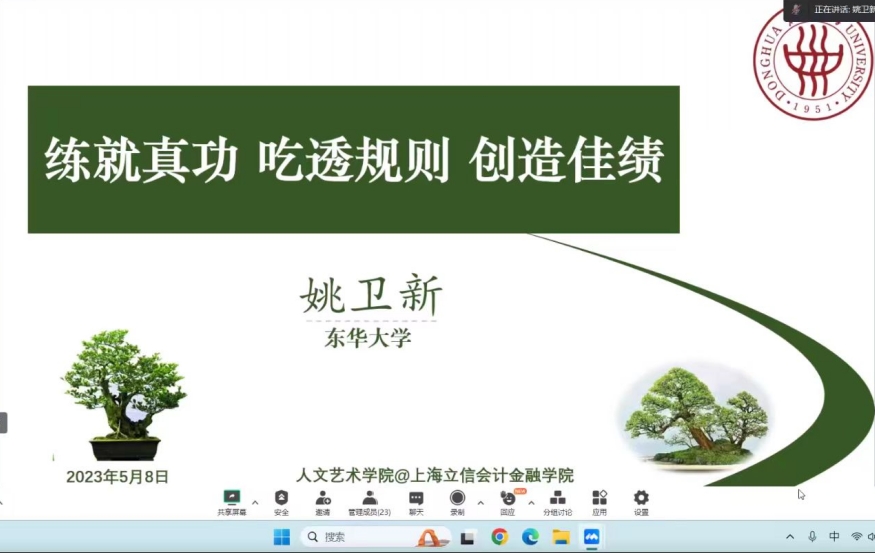 为了提高教师教育教学能力,提升教学竞赛水平,5月8日人文艺术学院以“腾讯会议”形式举办了教学竞赛辅导讲座,特邀东华大学教学委员会副主任、教育教学研究中心主任、上海市历届青年教师教学竞赛、教师教学创新大赛评委姚卫新教授进行辅导,讲座由人文艺术学院院长姚惠兰主持。