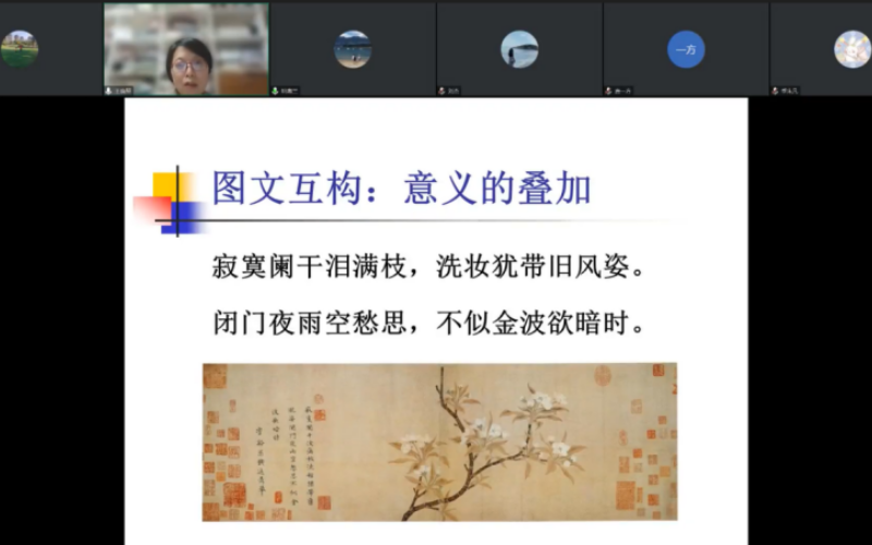 王晓骊教授以我国传统文化融合发展为背景,以古代文化发展序列中诗文不可动摇的核心地位为切入点,从“诗画一律”的提出,诗中有画:绘画对诗歌的影响,画中有诗:文学手段在绘画中的运用,和“诗画一律”的边界四个方面深入浅出的为大家带了一场精彩、有感染力的报告。