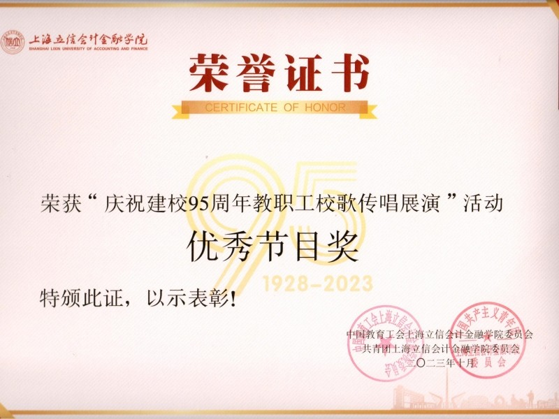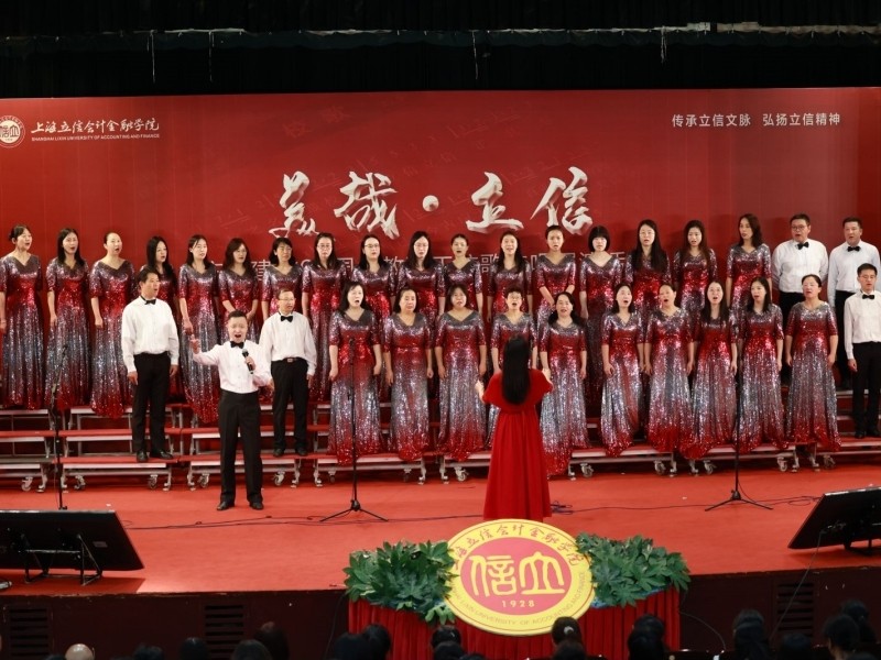 10月11日下午,由校工会、校团委联合举办的“美哉·立信”庆祝建校95周年教职工校歌传唱展演活动在上川路校区小剧场举行。人文艺术学院工会和立信研究院工会组织两院教职工40余人积极参加,合唱了校歌和《领航》两首歌曲,荣获“优秀节目奖”。