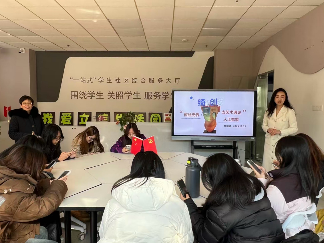 “绮智创艺”工作室负责人、人文艺术学院青年教师陶绮骋详细介绍了“绮智创艺”工作室的建设规划。未来工作室将以“美育浸润、创新实践”工作室为引擎,坚持“内涵深耕”+“外延拓展”双轮驱动,拓展“素养提升、创意孵化、服务社会”实施路径,助力学生提升艺术素养、激发创新潜能,打造具有立信特色的人文艺术育人品牌。揭牌仪式结束后,陶绮骋在学生之家举办“智绘无界:当艺术遇见”人工智能首场“绮创”活动。
