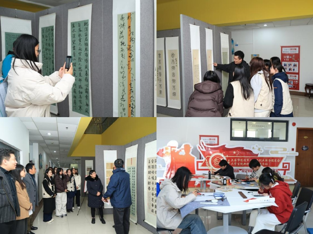 报告结束后,领导嘉宾与师生代表共同参观了“翰墨丹青颂抗战,绮智创艺润青春”书画艺术展,书画社的同学也在现场挥毫泼墨,师生在笔墨丹青间追溯红色记忆,于匠心佳作前驻足品鉴,围绕创作初心、艺术表达深入交流,现场既洋溢着浓厚的文化艺术气息,更激荡着传承红色精神的真挚情怀。