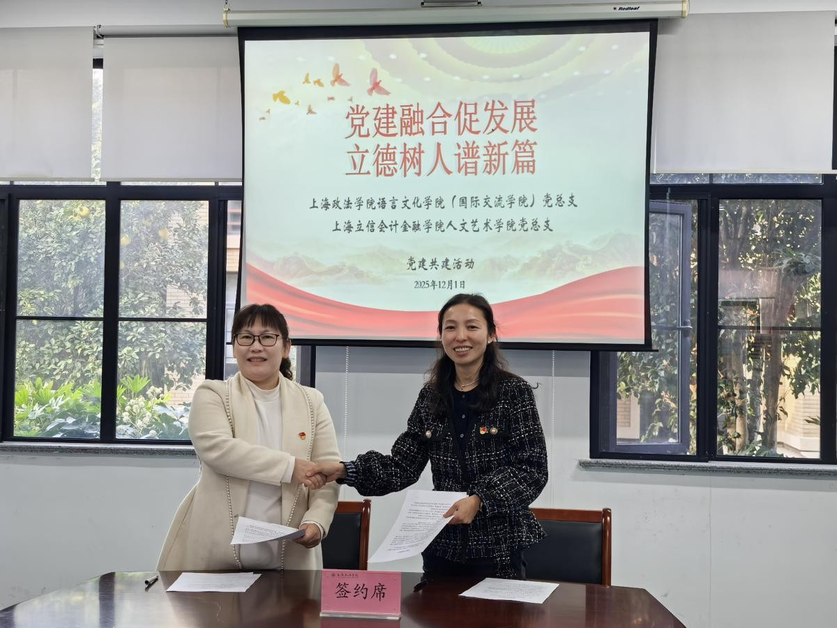 为深入学习贯彻习近平新时代中国特色社会主义思想,推动高校基层党建与教育教学深度融合,落实立德树人根本任务,12月1日 ,人文艺术学院党总支副书记(主持党务工作)张银爽带队赴上海政法学院青浦校区,与语言文化学院(国际交流学院)党总支一起开展联学共建活动。此次活动以“党建融合促发展 立德树人谱新篇”为主题,为两校基层党组织搭建了资源共享、优势互补的合作平台。