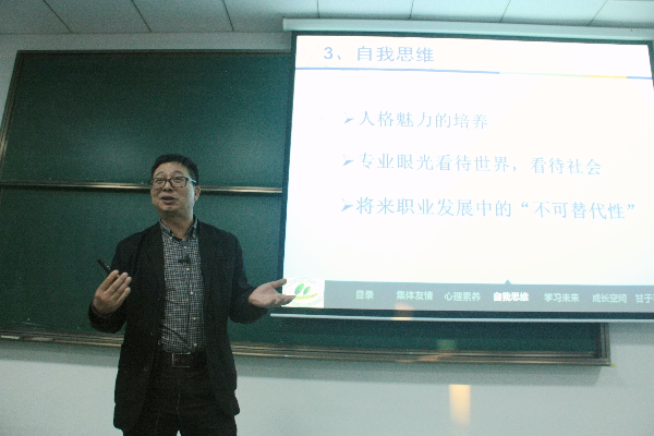 上海大学副教授、硕士生导师陆永生为同学们作了《大学生涯规划》讲座,从集体友情、心理素养、自我思维、学习未来、成长空间、甘于平淡等方面,提醒同学们注重培养团队精神,正确对待挫折与成功,加强知识积累,夯实求职实力,发现发掘个人优势,努力提高个人在职业发展中的不可替代性。