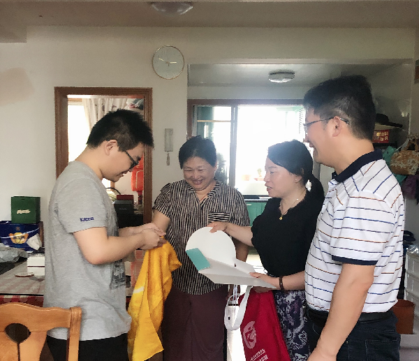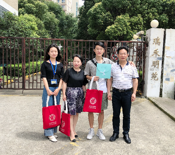 2020年7月10日,人文艺术学院党总支书记黄敏,党总支副书记、副院长陈嵩莉,辅导员叶婷婷,对2020届在沪毕业生开展暑期家访。老师们为2020届毕业生们送上学院老师们亲手扎染的丝巾,以及对他们未来的美好祝福。