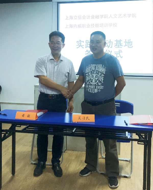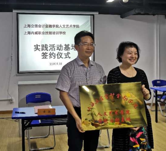为加强学生实践能力,培养学生综合素质,9月18日,人文艺术学院与上海内威培训学校举行学生实践活动基地签约仪式。人文艺术学院党总支书记黄敏和上海内威培训学校负责人吴惠红分别代表双方进行签约,上海内威培训学校校长吴习民、人文艺术学院党总支副书记陈嵩莉、辅导员叶婷婷等出席签约仪式。