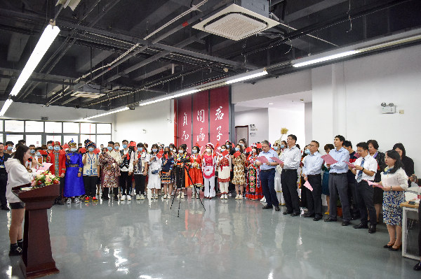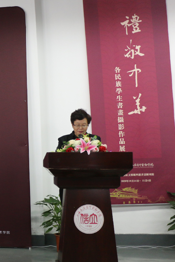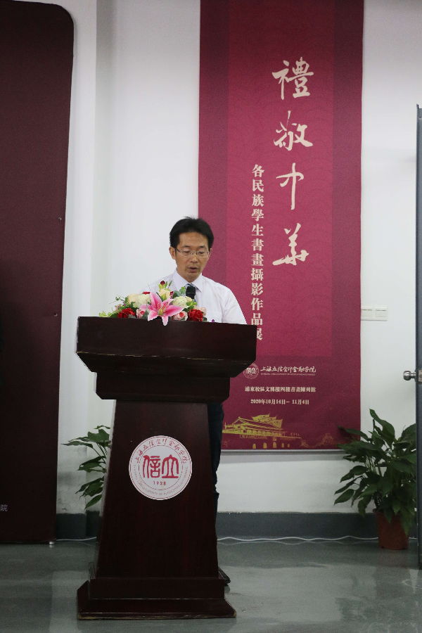 10月14日下午,人文艺术学院 “礼敬中华”各民族学生书画摄影展在浦东校区书画陈列馆开幕。校党委书记李世平、副校长赵荣善、党委办公室主任李延绍、上海市科技艺术教育中心副主任田磊、著名书画与园林艺术家乐峰出席开幕式,学校各部门领导、师生代表和各民族参展学生参加了仪式。开幕式由人文艺术学院主持工作副院长、副书记姚惠兰主持。展览由赵荣善宣布开幕,作为全国财经院校中首个线上学生作品展示馆的线上展厅也同步开启。