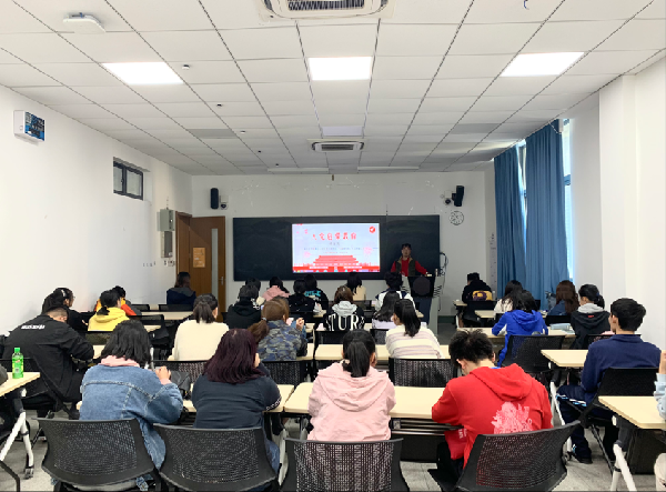 学院专职组织员虞红,学生党支部书记、辅导员叶婷婷以及全体2020级新生参加了本次讲座。