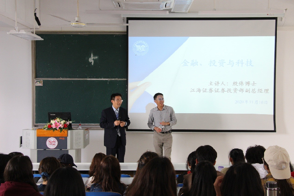 11月18日下午,在浦东校区第六教学楼202教室,上海江海证劵证劵投资部副总经理殷伟博士为我校少数民族预科生作《金融、投资与科技》主题讲座。讲座由人文艺术学院党总书记黄敏主持,人文艺术学院教师代表和全体少数民族预科学生参加。