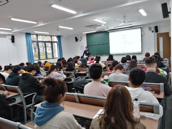 蔡斌警官多年来一直致力于大学生安全防范宣传,是浦东公民警校的知名优秀宣讲教官。他与陈嵩莉老师共同开设的《大学生安全素质养成教育》是易班优课课程,也是上海立信会计金融学院新生入学教育专题系列课程之一,已有近8000名学生学习了该课程。此次蔡斌警官走下屏幕走进教室,送精品安全防范讲座进课堂,受到师生热烈欢迎。生动的案例分析,实用的防范技能以及翻转课堂的巧妙运用让同学们耳目一新并受益匪浅。